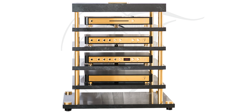 The elegant design of TRINITY “Golden Reference Edition” and its unattainable technical performance will meet the highest expectations of our clientele. The measurement results of these high quality hand manufactured devices itself are a unique competitive differentiator. For the first time in the audiophile history, you can enjoy a distortion free playback of your favourite music collection. The “Golden Reference Edition” has an impressive sophisticated design with a 24 carat Gold platted front and eight 3mm Rubies as optical indicators. The gold-platted feet stand on 10mm Ruby balls (optional).